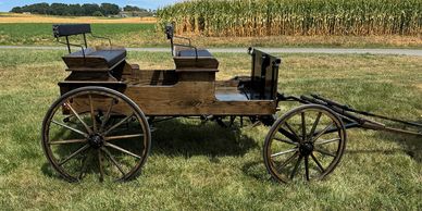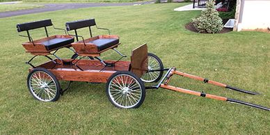 This is a very lightweight and low riding wagon making it easy to get in and out of. This wagon offers a very comfortable ride with the seat spring suspension and cushioned vinyl seats. Wood and wire spoked wheels are interchangeable. Box size: 26"x5' we also offer a larger size. Weight 230lbs Fits 30"-40" This model can be used for single or team $2350.00